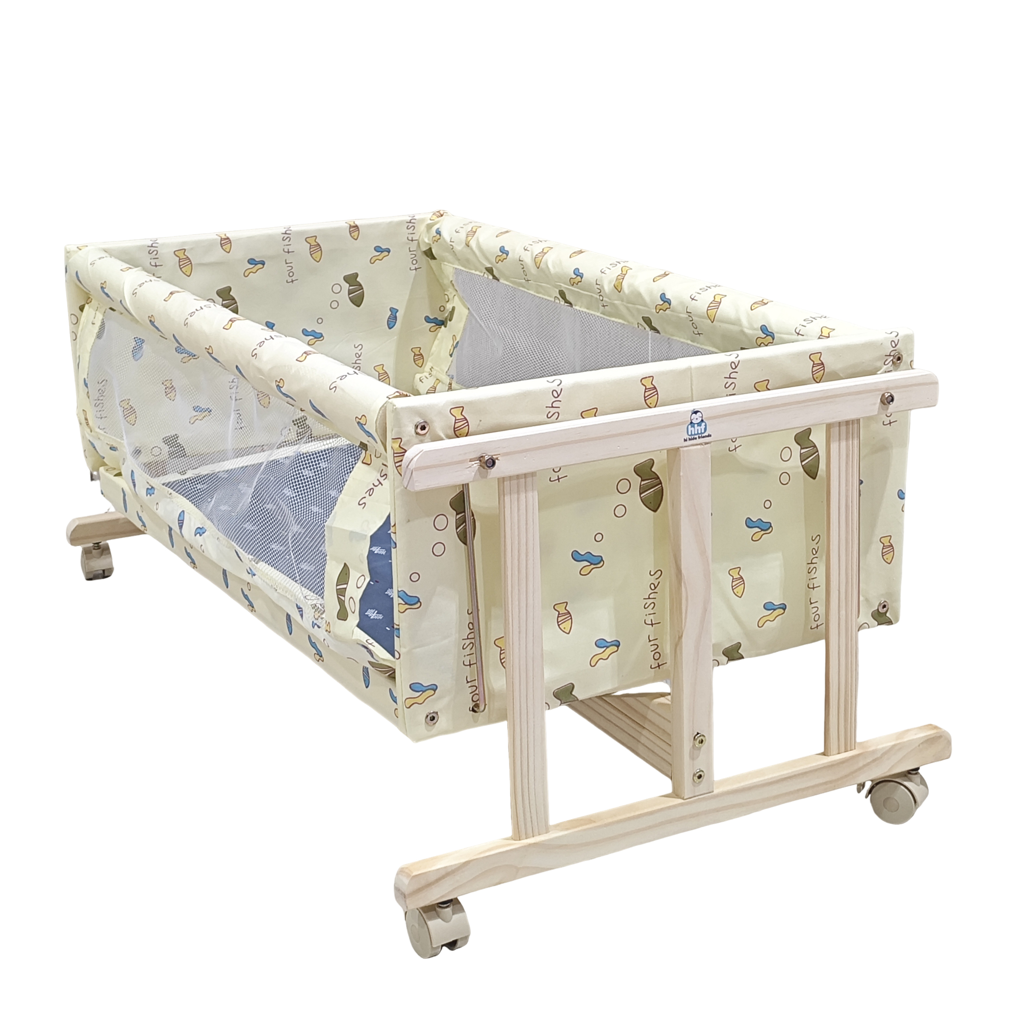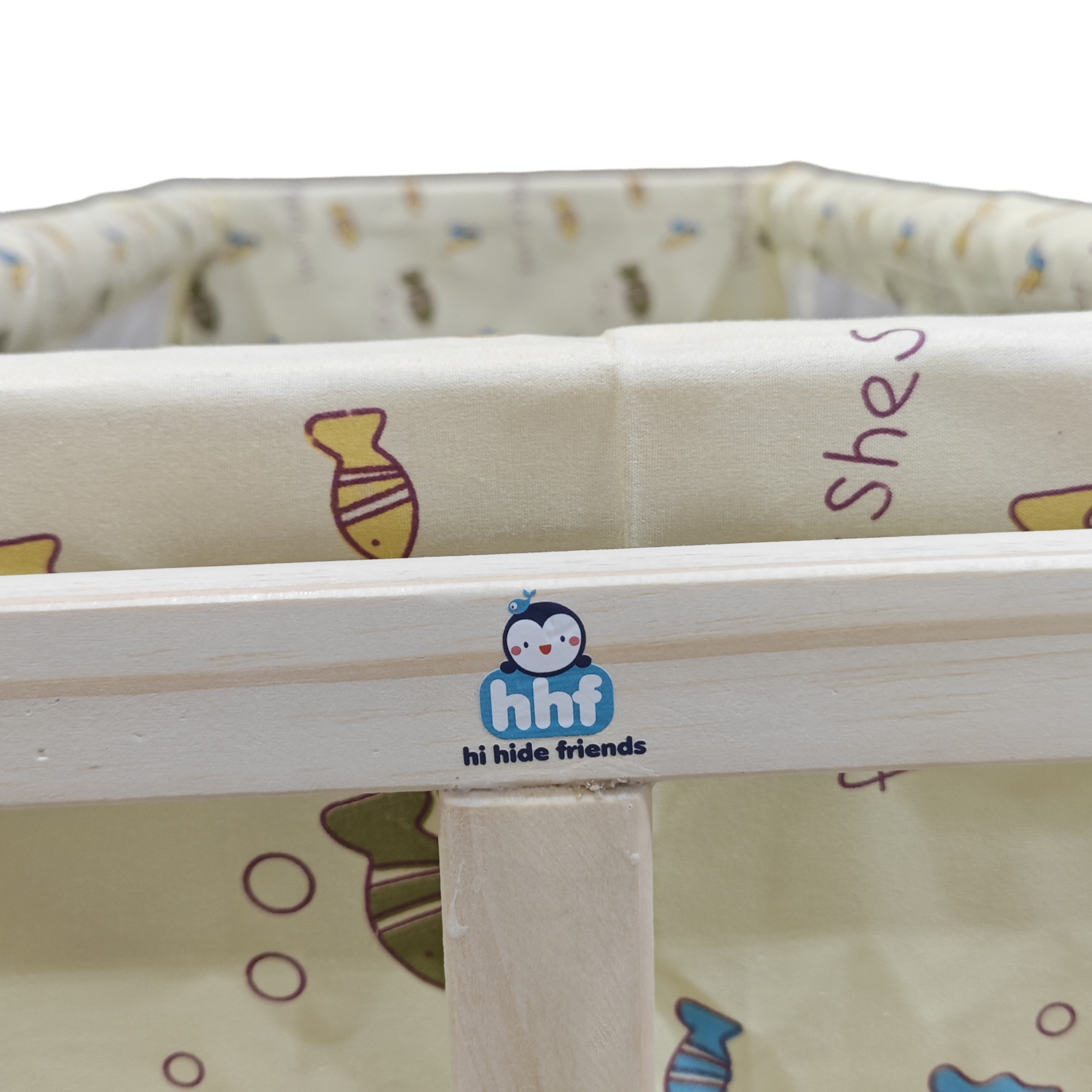 Cute & Easy to Clean: The playful fish-patterned fabric cover is removable and machine washable, keeping your baby’s sleeping environment fresh and hygienic with minimal effort.