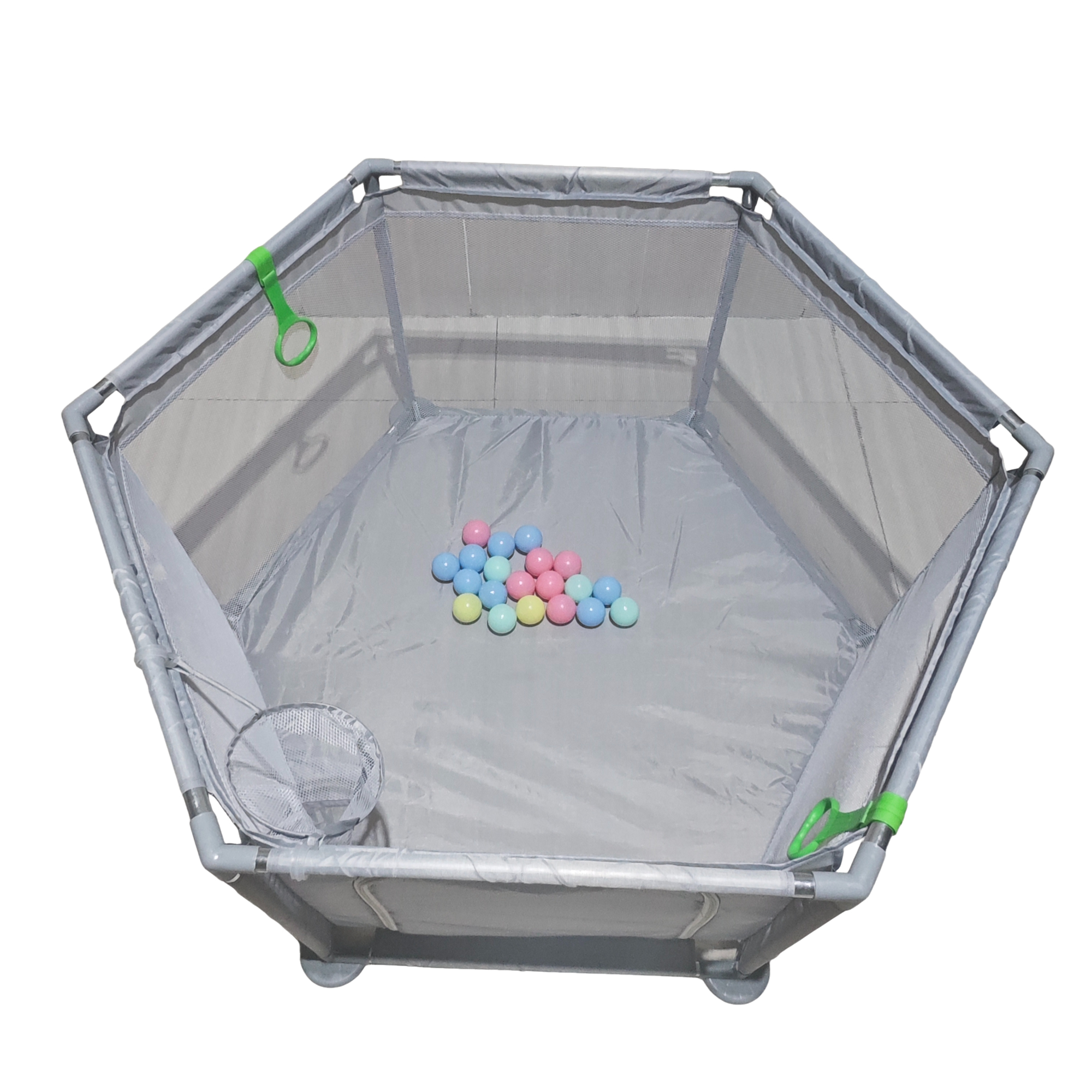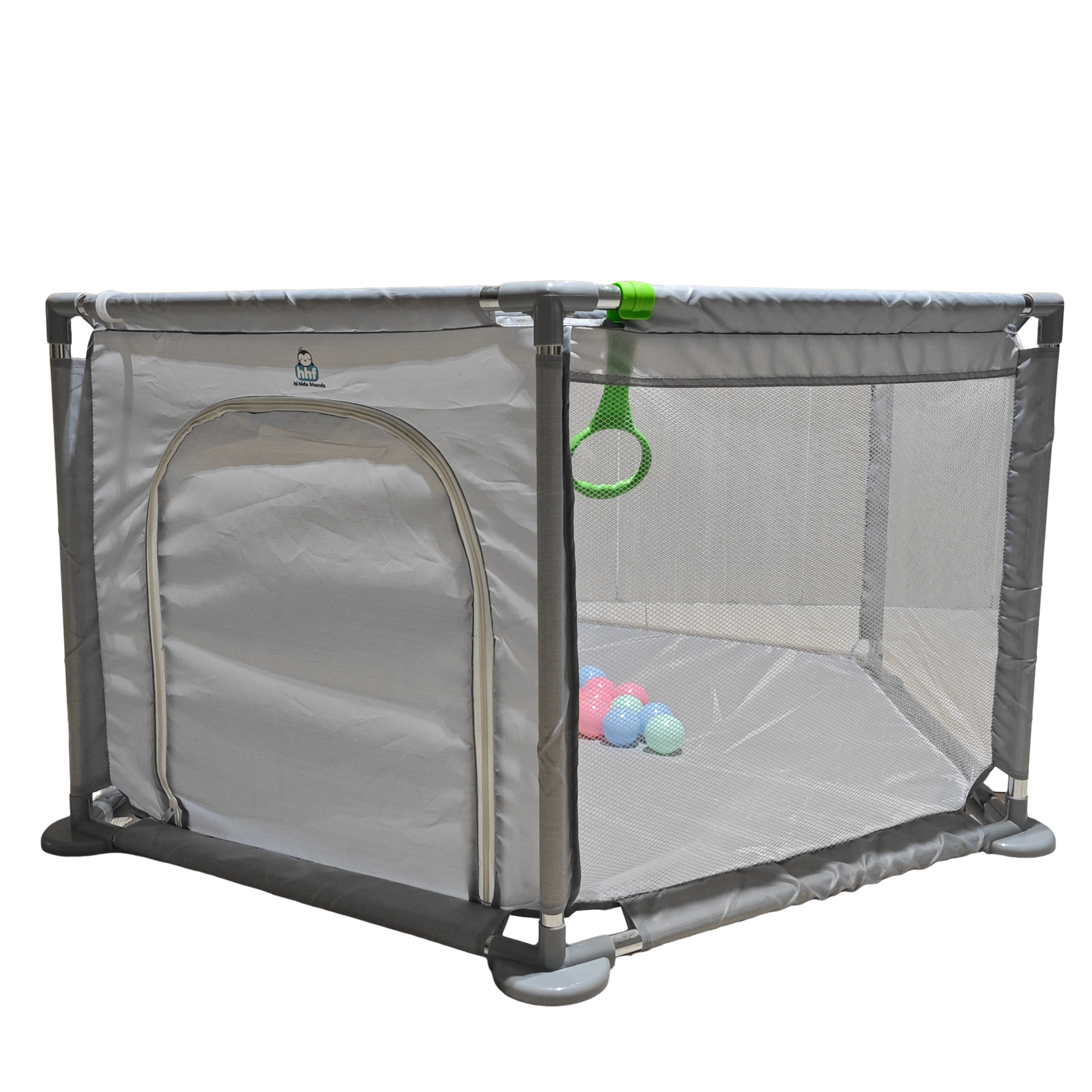 hhf hi hide friends Foldable Play yards | Safety Play Yard with Breathable Mesh, Zipper Door, Pull Rings & Ball Pit for Indoor/Outdoor Use (Grey)